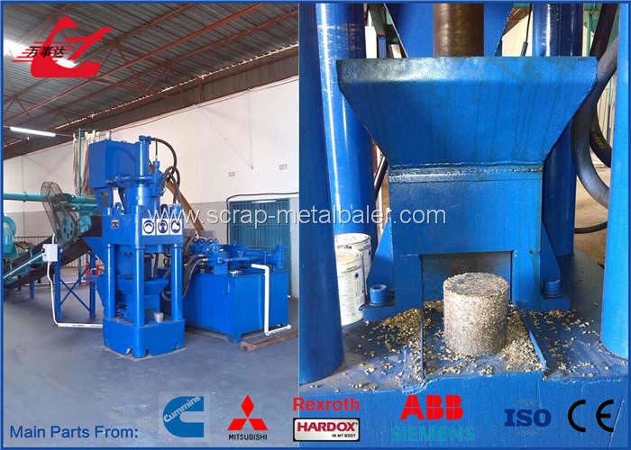 Sous les situations qu'elle n'est pas chauffée ou n'est pas ajoutée avec des additifs, la presse de briquette de mitraille est capable des matériaux granulaires et en poudre diversifiés par pressing dans les briquettes cylindrique à haute densité il est difficile de devenir que lâchement. Elle traite les déchets comme l'acier de chute, la fonte, la fonte, le lingot en aluminium, le cuivre de rebut, le magnésium, le titane et le molybdène pour la fusion secondaire au lieu de les employer directement.